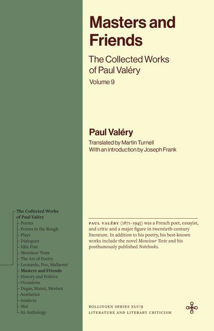 A collection of Valéry's essays and speeches on a wide range of philosophers, novelists, and poets <p/>Masters and Friends is a collection of Paul Valéry's essays and speeches on writers who shaped his mind, interests, and affections: Descartes, Voltaire, Stendhal, Goethe, Villon, Nietzsche, Pascal, Proust, Huysmans, Pierre Louÿs, Nerval, Rilke, Bergson, and others. The volume also includes an appendix of Valéry's private comments on these writers in his Notebooks. <p/>The Collected Works of Paul Valéry, the first collected edition of the writer in English, features new translations, the original French on facing pages for poetic works, and editorial notes.