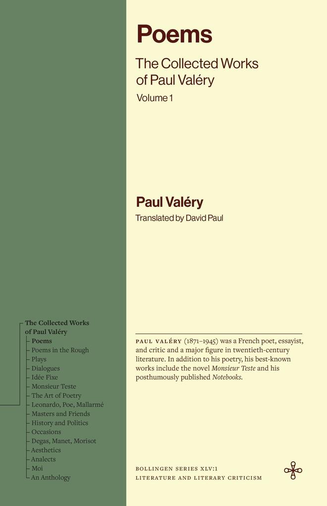 The Collected Works of Paul Valéry, the first collected edition of the writer in English, features new translations, the original French on facing pages for poetic works, and editorial notes.