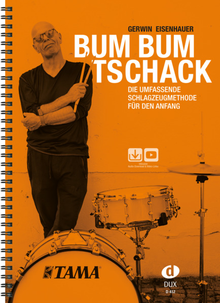 Das neu aufbereitete Schulprogramm "Bum Bum Tschack" von Gerwin Eisenhauer besteht aus der Schlagzeugmethode für den Anfang (D 412) sowie den drei weiterführenden Bänden "Technik & Lesen" (D 421), "Grooves & Fills" (D 422) und "Jazz & Latin" (D 423).