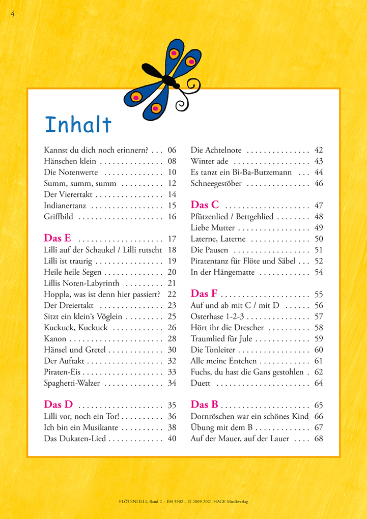 Wer den Fünftonraum von g1 - d2 beherrscht, kann ohne Weiteres mit Band 2 der Flötenlilli neu einsteigen. Die Katze Lilli und ihre Freunde begleiten durch Musiktheorie und -praxis und zeigen genau, was zu tun ist.