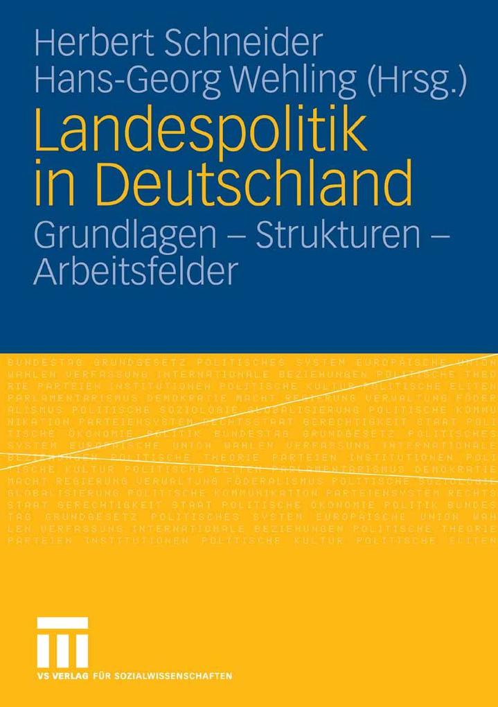 Landespolitik und Länderpolitik im föderalistischen System Deutschlands zur Einführung.- Die Länder in der deutschen und europäischen Mehrebenenpolitik.- Bundesstaatliche Finanzbeziehungen und Haushaltspolitik der Länder.- Föderalismus und politische Kultur in der Bundesrepublik Deutschland.- Länderparlamentarismus.- Landesregierungen.- Ministerpräsidenten.- Staatskanzleien.- Landes-Parteien: Anders, nicht verschieden.- Medien und Landespolitik.- Bildungspolitik als Länderpolitik.- Verwaltungs- und Kommunalpolitik der Länder.- Arbeitsmarkt- und Sozialpolitik in den Bundesländern.- Sicherheitspolitik der Länder.